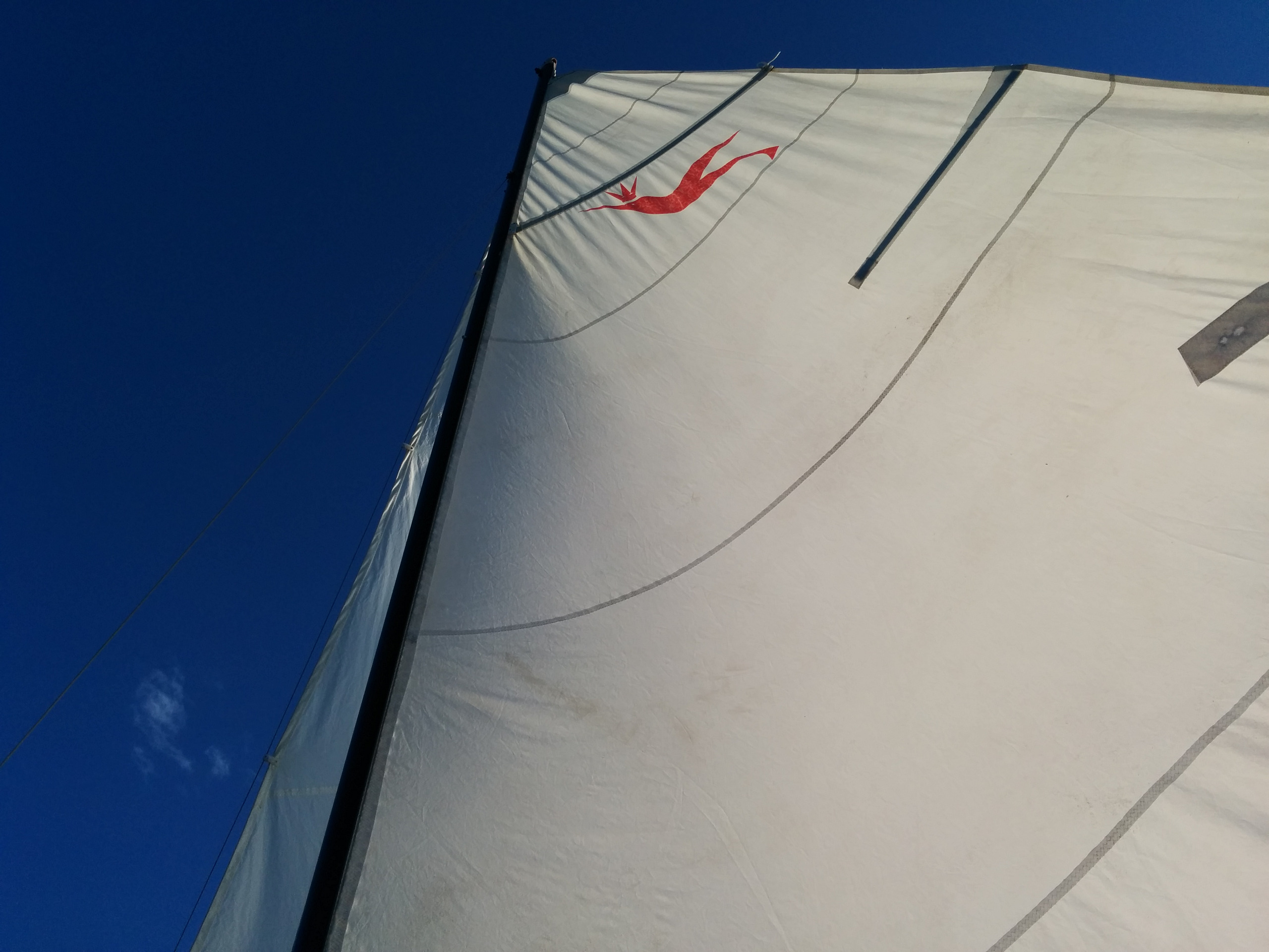 We've since replaced these sails with new ones custom built for the dinghy. The originals still do the job but like anything that gets older they're tired, a bit saggy and spill wind too easily. We'll keep them as backups in case we have issues with the new sails.
